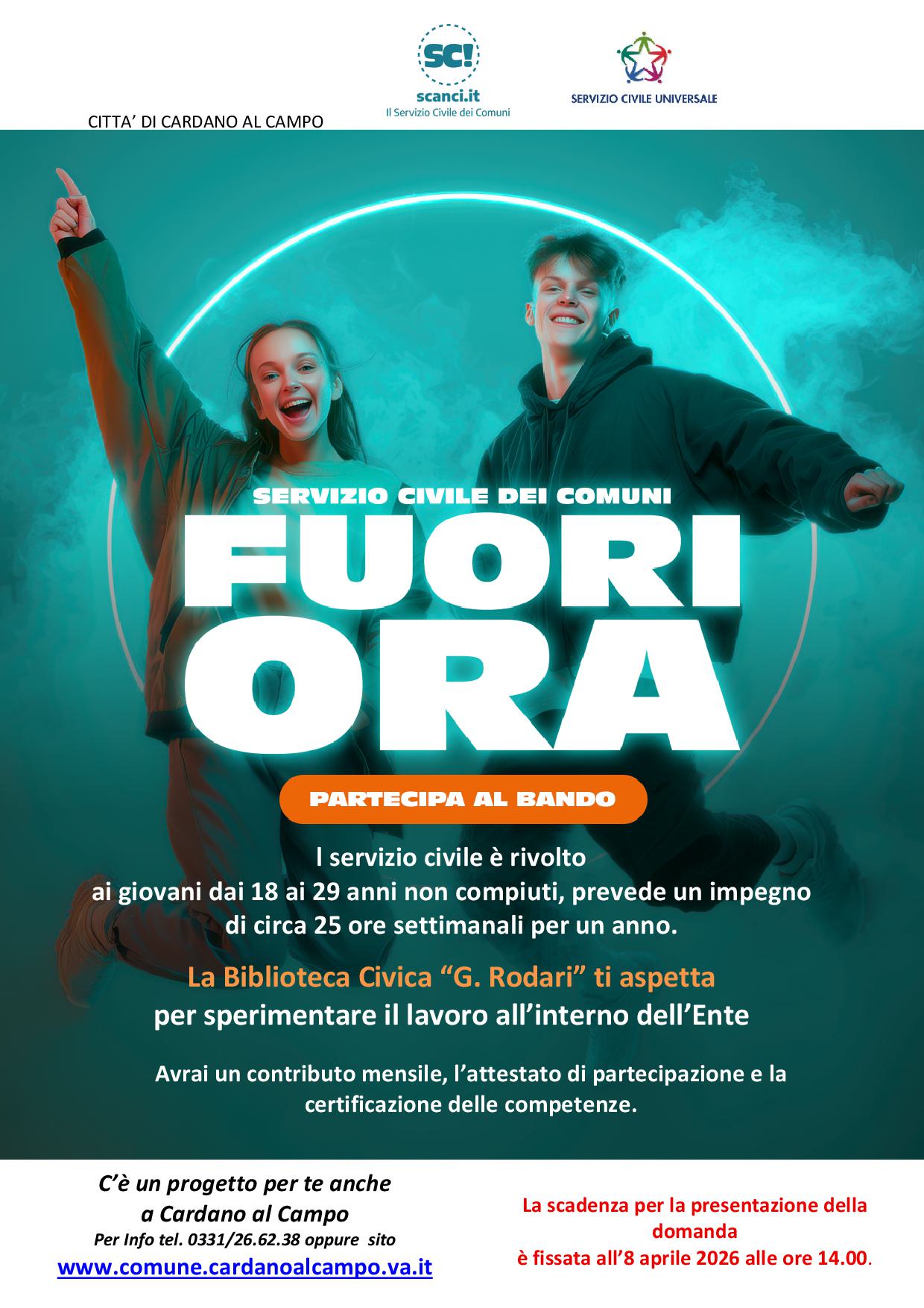 Tra i vari progetti troverete anche quello per una figura da impiegare presso la Biblioteca Civica e Ufficio cultura del Comune di Cardano al Campo, identificato con codice progetto PTXSU0014225010118NMTX.