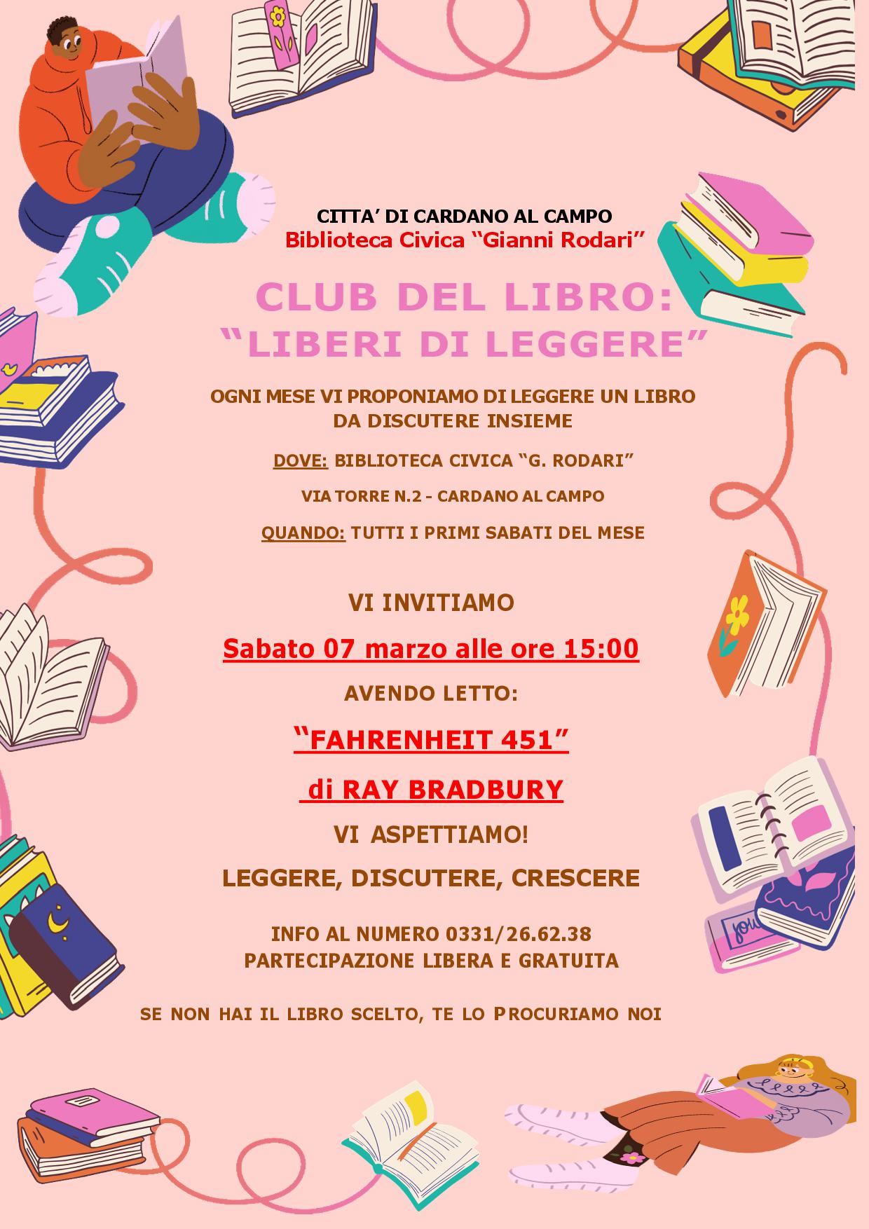 DOVE: presso la Biblioteca Civica G. Rodari in via Torre n. 2 a Cardano al Campo.