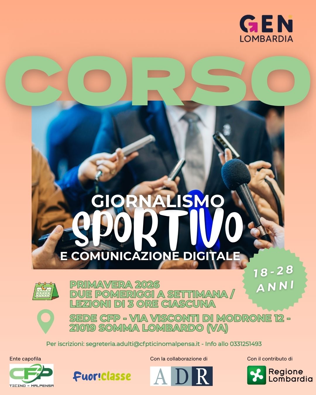 Il CFP di Somma Lombardo con il contributo di Regione Lombardia organizza un Corso di giornalismo sportivo e comunicazione per i ragazzi di 18-28 anni.