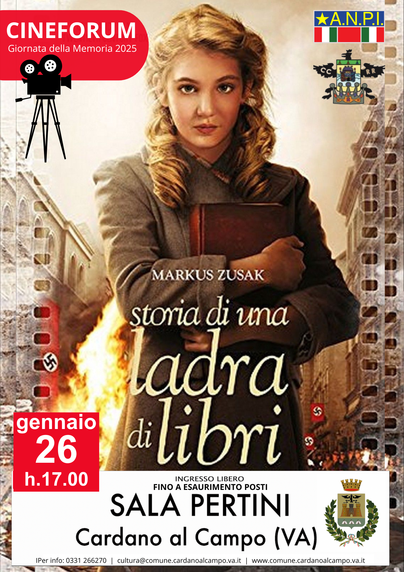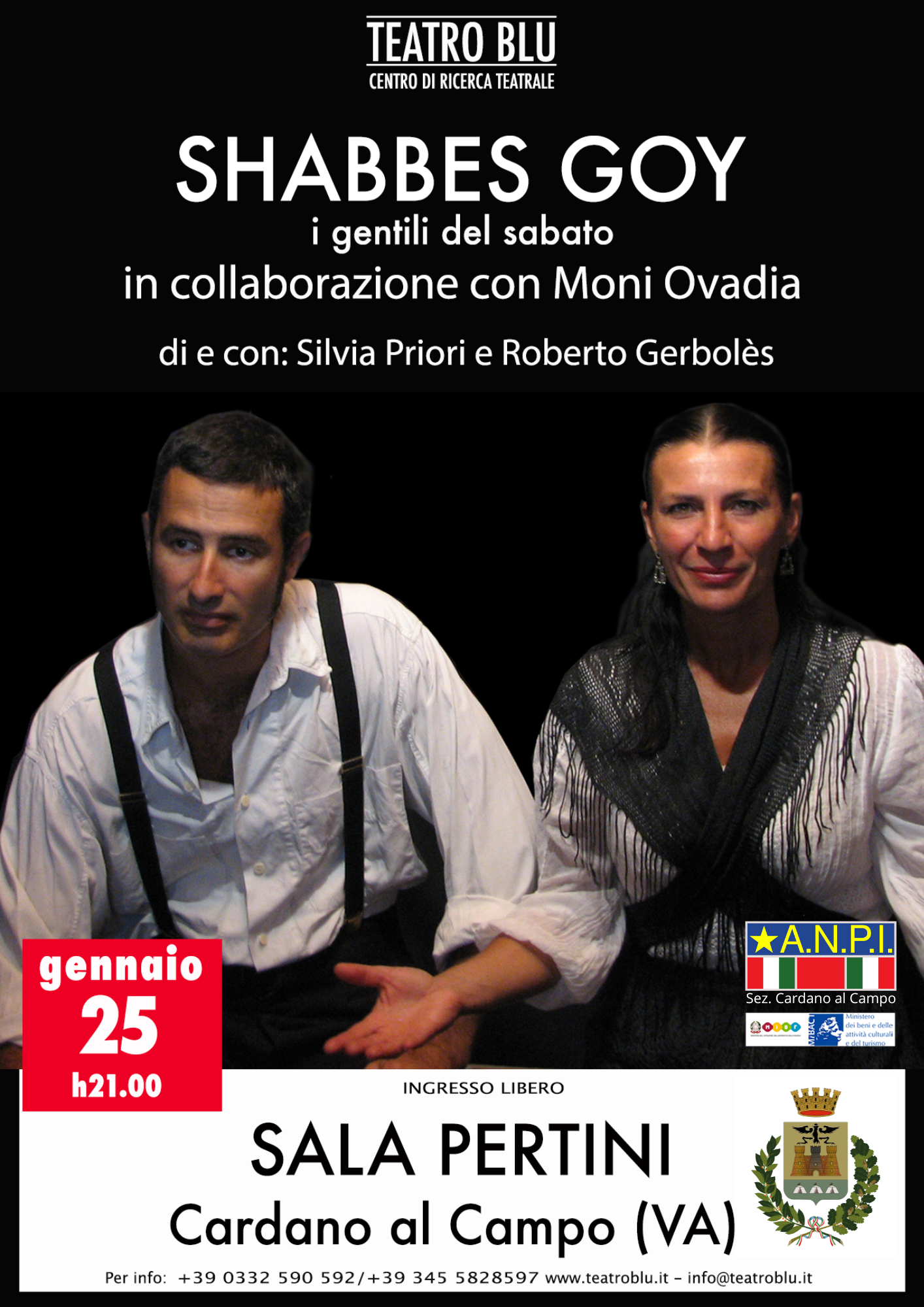 In occasione della giornata della memoria l’Assessorato alla Cultura con la collaborazione dell’Associazione ANPI di Cardano al Campo propone alla cittadinanza lo spettacolo teatrale “Shabbes Goy” di Teatro Blu il 25 gennaio 2025 alle 21.00 e la proiezione del film “Storia di una ladra di libri” il 26 gennaio 2025 alle 17.00.