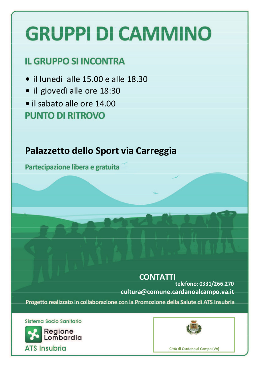 I GRUPPI DI CAMMINO sono un progetto promosso da Promozione ATS INSUBRIA – Promozione della salute e Comune di Cardano al Campo.