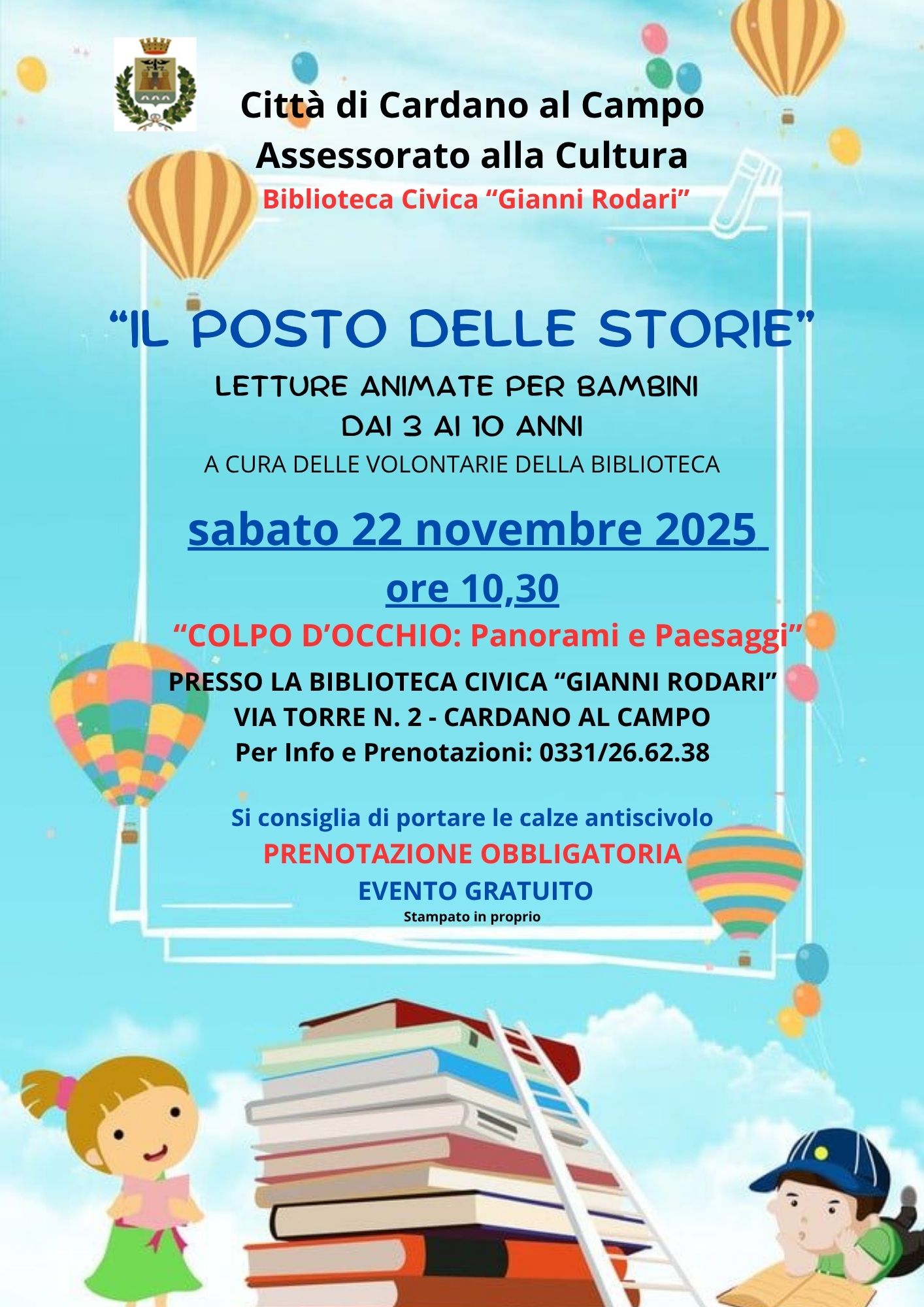 Nell’ambito della rassegna “Il posto delle storie”, sabato 22 novembre 2025 alle ore 10.30 presso la Biblioteca Civica, si terrà la lettura animata dal titolo “Colpo d’occhio: Panorami e Paesaggi”, dedicata ai bambini dai 3 ai 10 anni.