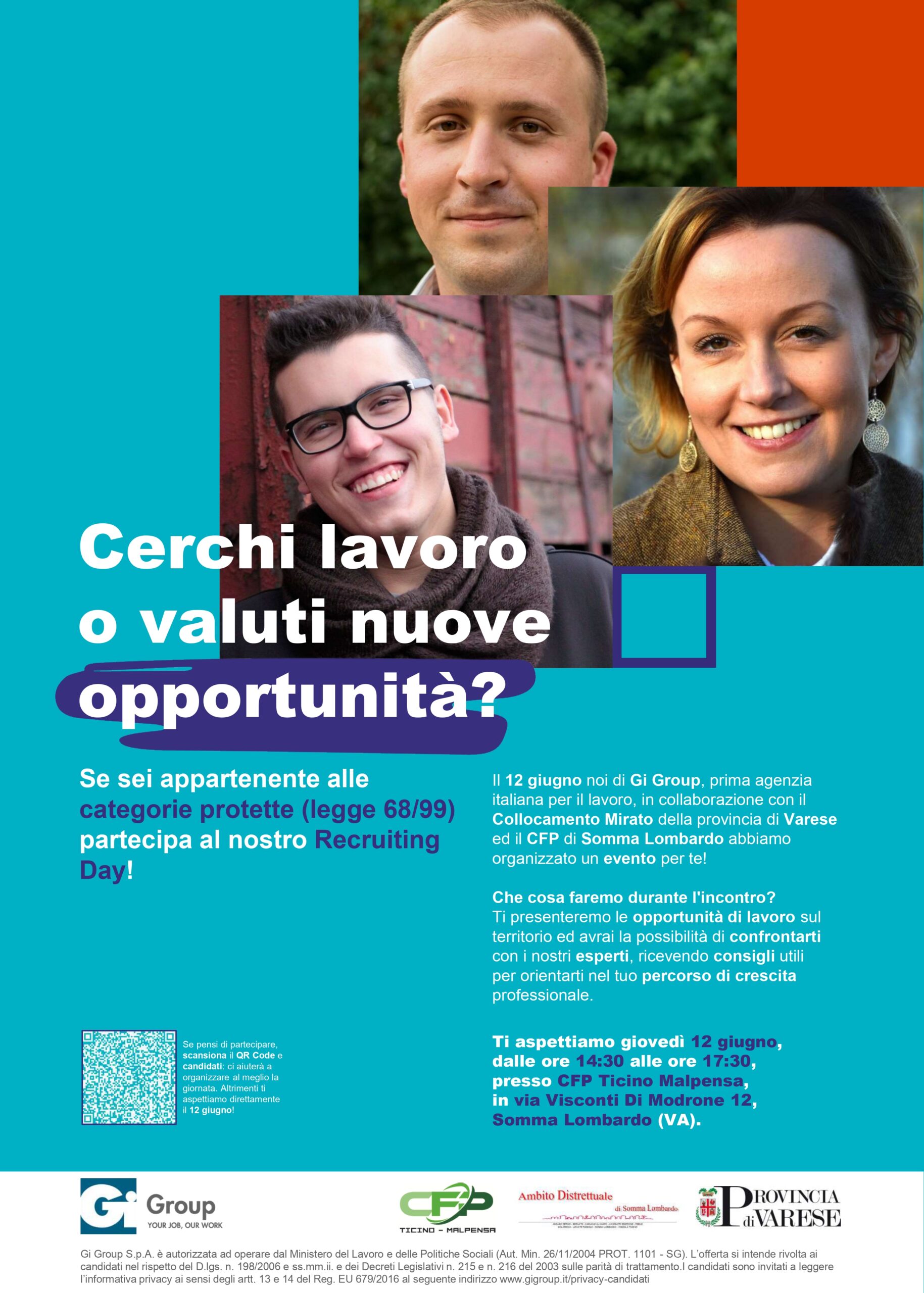 Il Recruiting Day è organizzato da GiGroup ed il Collocamento mirato disabili della Provincia di Varese per le categorie protette.