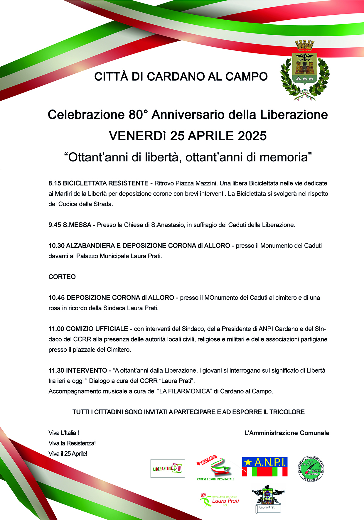 10.30 Alzabandiera presso il Municipio, corteo e deposizione corone d’alloro.