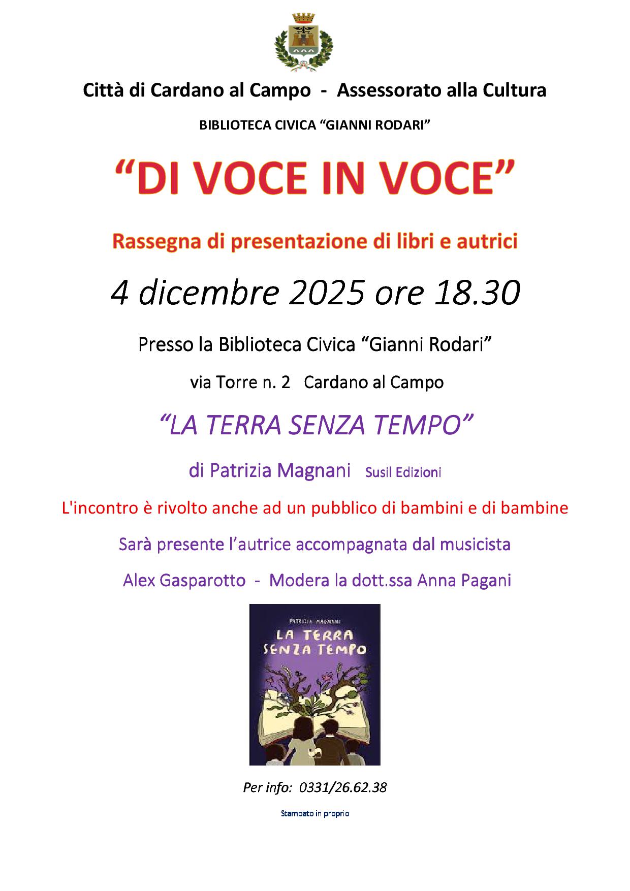 L’evento si terrà il 4.12.2025 ore 18.30 presso la Biblioteca Civica G. Rodari sita in via Torre n. 2.
