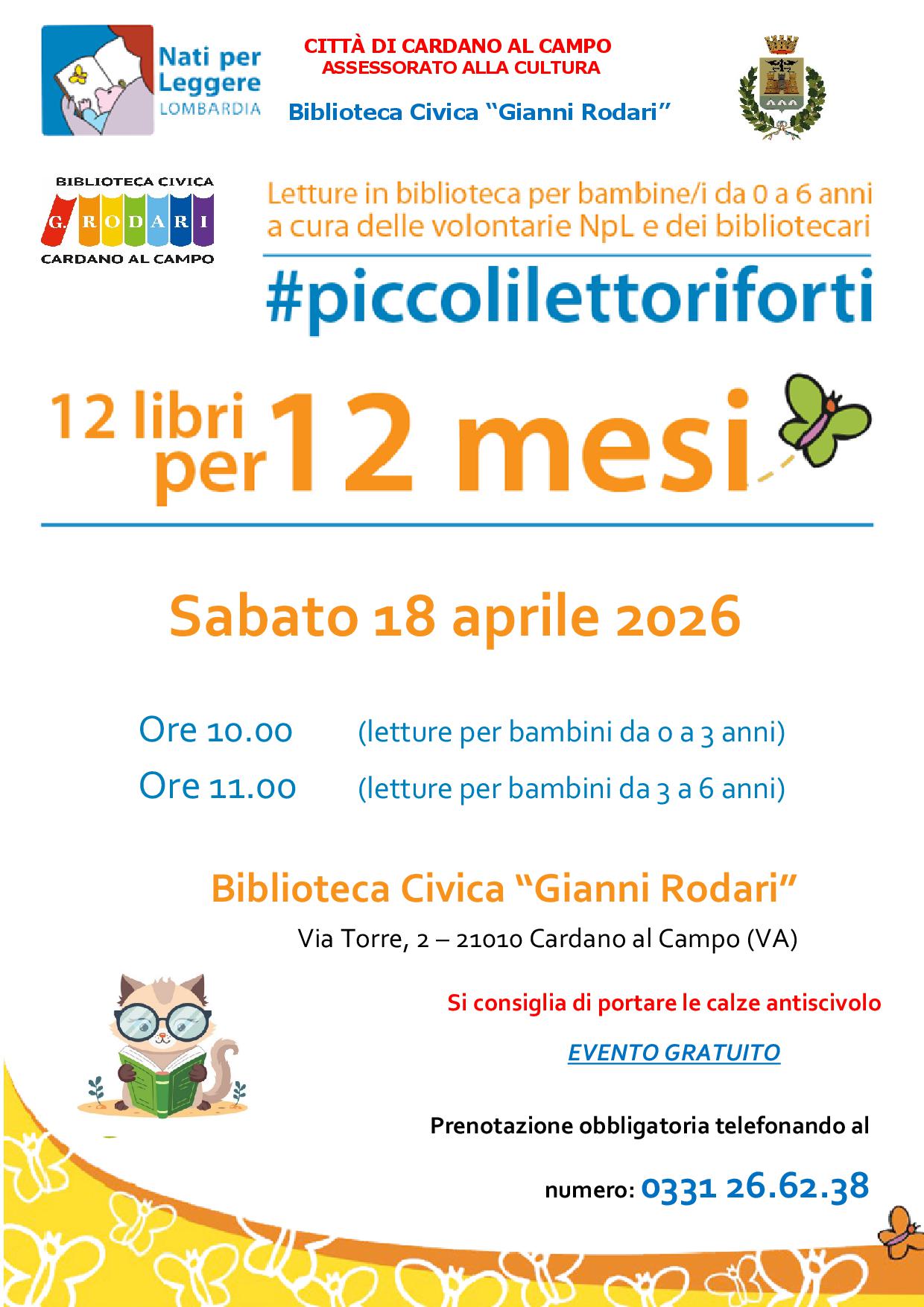 Nell’ambito del progetto “Nati per Leggere – 12 libri per 12 mesi” sabato 18 aprile 2026 si terranno presso la Biblioteca Civica “G. Rodari” sita in Via Torre letture dedicate ai bambini :